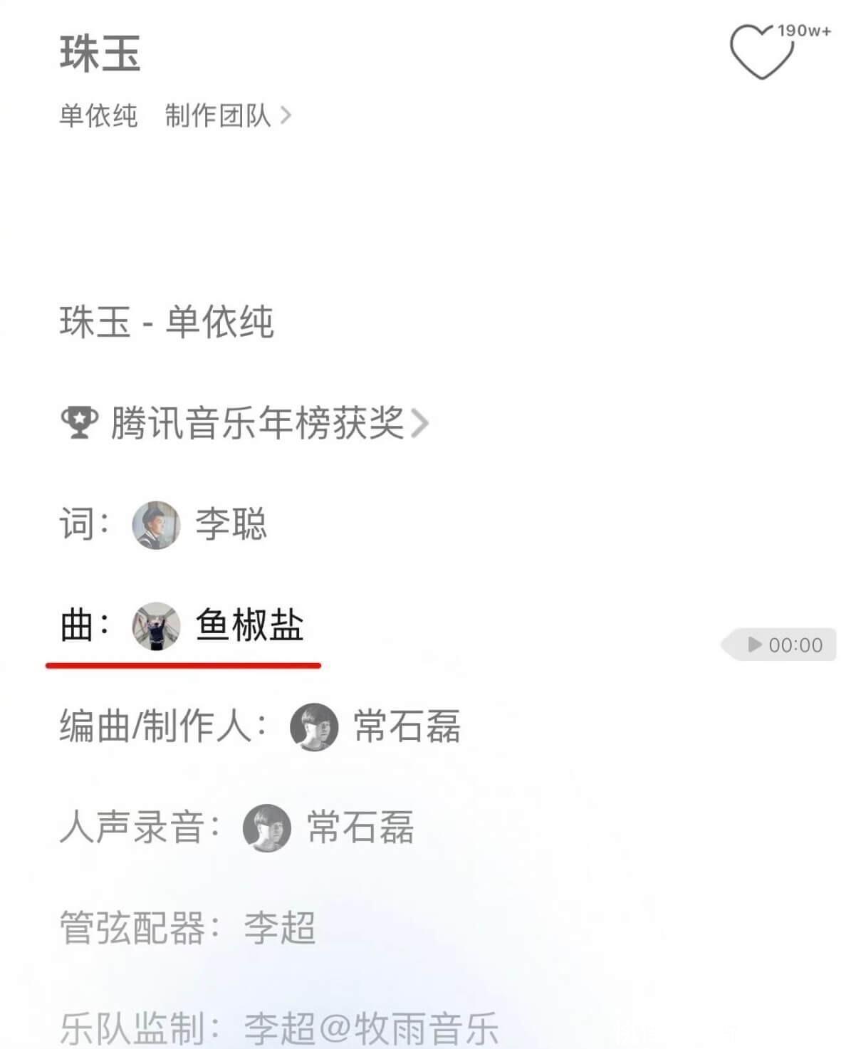 然后,鱼椒盐登场了。 作为单依纯的好友和《珠玉》的作曲人,她在李荣浩回应抄袭的微博评论区,留下了那句引发轩然大波的比喻。