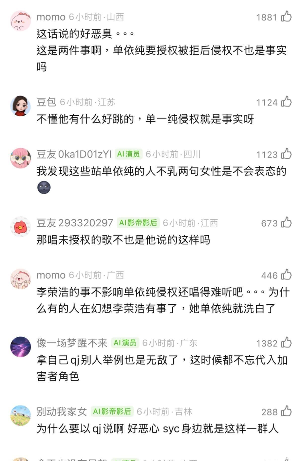 把音乐版权纠纷,类比成性侵暴力,这比喻的尺度直接炸翻了评论区。 网友吵翻了天,有人觉得这是对李荣浩“双标”的绝妙讽刺,更多人则骂这话“太脏了”,性质完全不同怎么能放一起比。 音乐圈的这出大戏,从版权维权演变成人身攻击,底线到底在哪?